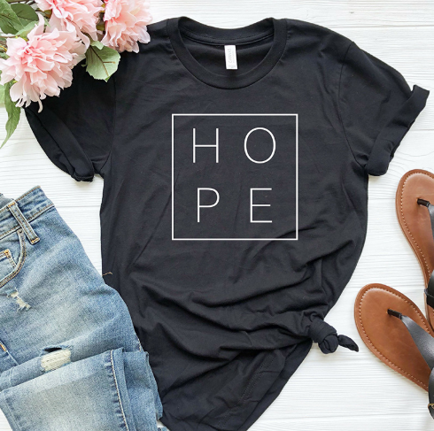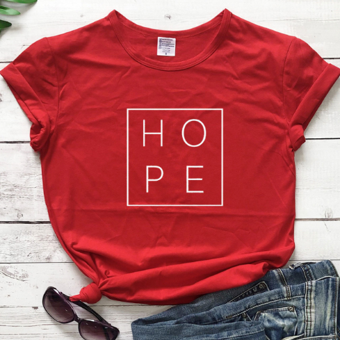 Hope simple letter printing men and women round neck loose cotton short-sleeved T-shirt